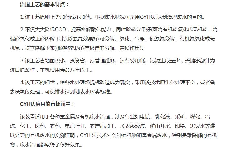 超強氧化還原廢水處理裝置(CYH法)處理各種有機廢水、各種重金屬廢水