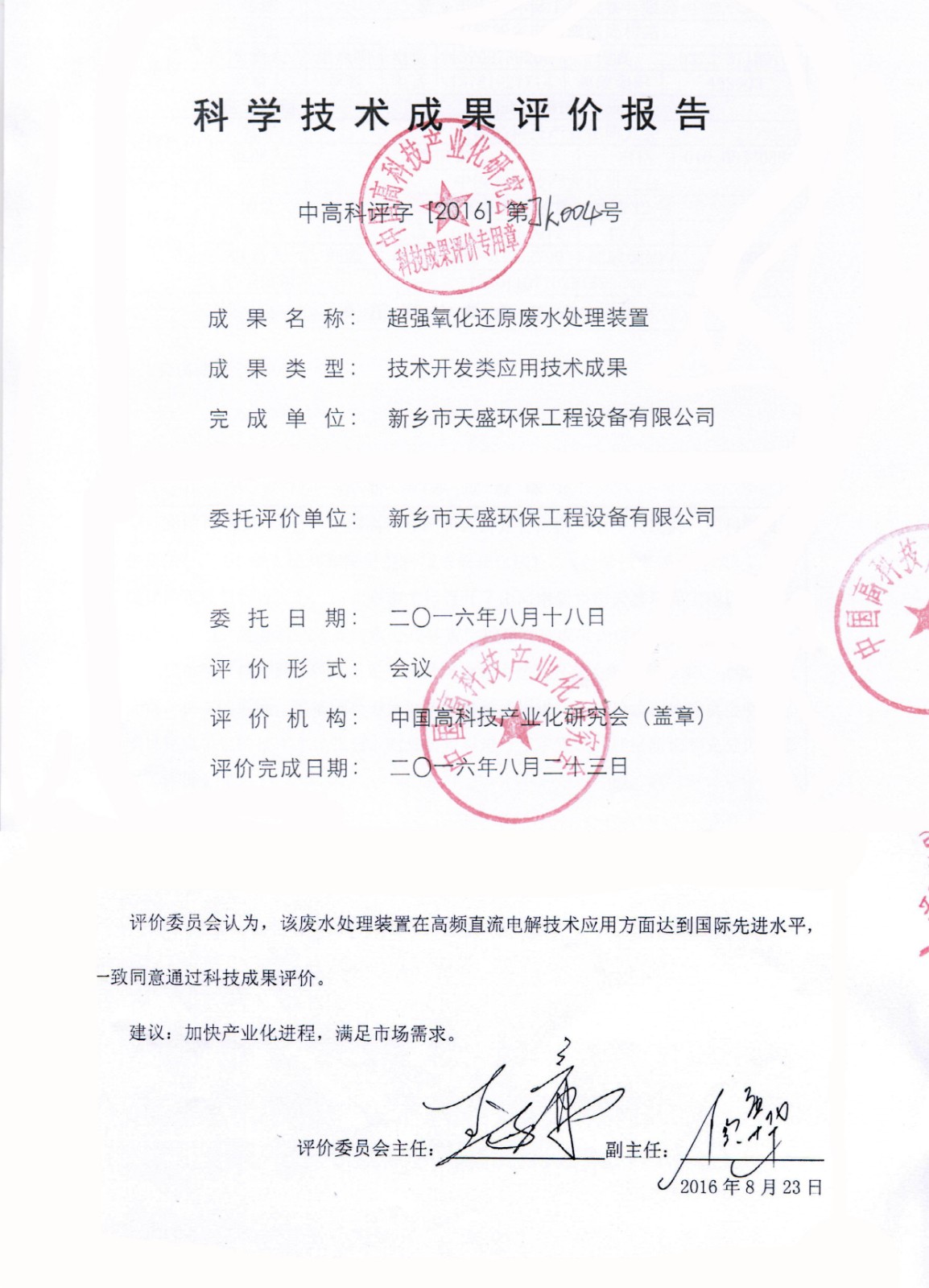 中國高新技術網發布:《關注:解碼科技創新》——新鄉市天盛環保“超強氧化還原廢水處理技術”